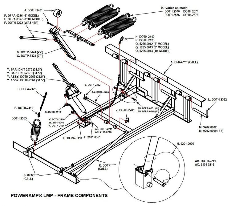 DOTP-6423 Poweramp Lifting Arm Assembly, 27" Lgincludes 4" Od Roller Assembly. (Levelers Year 2000 And Newer)